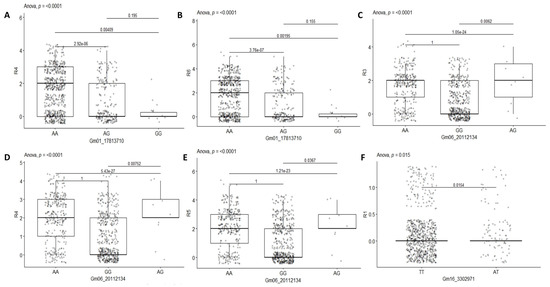 The SNPs’ contributions to the resistance to red leaf blotch disease based on the observed alleles were plotted using the “ggplots”, and their confidence statistics were calculated with “rstatix” in R.