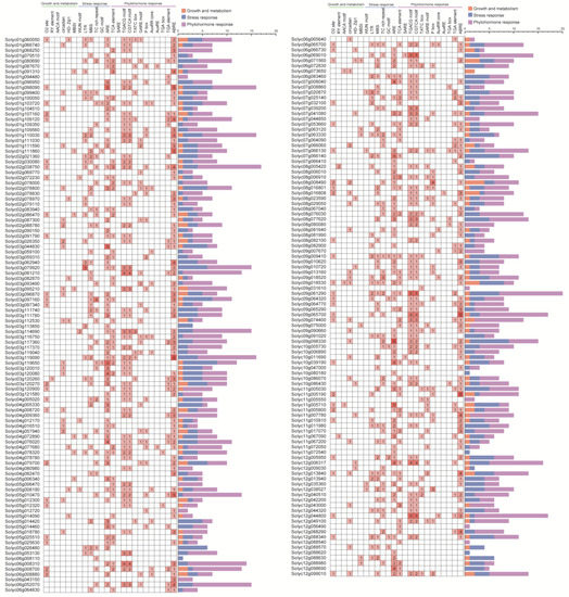 - Fernandez-Pozo, N.; Menda, N.; Edwards, J.D.; Saha, S.; Tecle, I.Y.; Strickler, S.R.; Bombarely, A.; Fisher-York, T.; Pujar, A.; Foerster, H.; et al. The Sol Genomics Network (SGN)—From genotype to phenotype to breeding. Nucleic Acids Res. 2015, 43, D1036–D1041. [Google Scholar] [CrossRef]