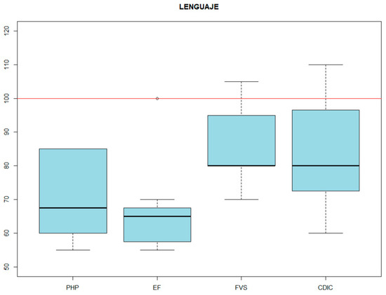 The basic demographic characteristics of the patients (sex and age) and the scores of the tests administered in comparison with the current Spanish scale were analyzed with R version 1.1.456® [38]. As this was a descriptive study, boxplots, also known as box-and-whisker plots, are a visual representation showing the distribution of a set of numerical data.