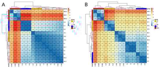 The clustering results based on Euclidean distance showed that the VF group was the closest to the N group, both in the intestine and the liver (Figure 13).