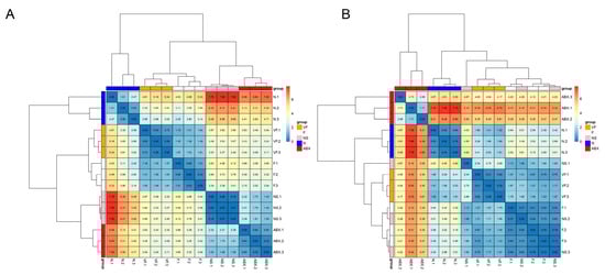(A) Clustered heat map of gene expression in the small intestine. (B) Clustered heatmap of gene expression in the liver.
