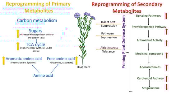 Plants have many adaptations for surviving in conditions of drought and/or water shortage [83,84]. It is crucial to comprehend these processes in order to create agricultural plants that are resistant to such circumstances [85]. Quéro et al. [86] tried to investigate the processes underlying b-aminobutyric acid (BABA)-induced drought adaptation in plants. BABA causes a reorganisation of the solute content in flax leaves that results in an increased accumulation of proline and nonstructural carbohydrates, as well as a drop in inorganic solutes, according to metabolomic and ionomic profiling of the leaves [59]. In one of the previous studies, it was discovered that BABA therapy caused alterations that made flax plants more resistant to drought stress [86]. Under various irrigation regimes, Ansari et al. [87] investigated the relationship between the crop and mycorrhizal fungi. In a recent study conducted by Liu et al. [11], it was discovered that, in contrast to various plant species, flax mycorrhizal fungus may promote development under both stress and non-stress conditions.