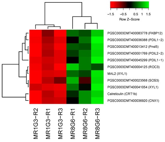 Three genes with disulfide isomerase-like proteins are present in this cluster—STPDI1, 2 and 3. They interact with calnexin (PGSC0003DMT400036920). StPDI1, accumulated upon salt exposure, catalyzes the formation of disulfide bonds and confers tertiary and quaternary structures to the proteins. Thus, they may act as chaperones during salt stress, as previously described for HSPs [90].