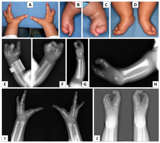 - Sifakis, S.; Basel, D.; Ianakiev, P.; Kilpatrick, M.; Tsipouras, P. Distal limb malformations: Underlying mechanisms and clinical associations. Clin. Genet. 2001, 60, 165–172. [Google Scholar] [CrossRef] [PubMed]