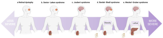 - Reiter, J.F.; Leroux, M.R. Genes and molecular pathways underpinning ciliopathies. Nat. Rev. Mol. Cell Biol. 2017, 18, 533–547. [Google Scholar] [CrossRef]