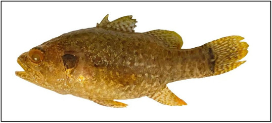 - Pan, Y.; Chen, J.; Liu, C.; Zeng, L.; Zhao, X. The Complete Mitochondrial Genome of Archamia macropterus (Perciformes; Apogonidae) and Phylogenetic Studies of Perciformes. Mitochondrial DNA Part B 2019, 4, 3740–3741. [Google Scholar] [CrossRef] [PubMed]
