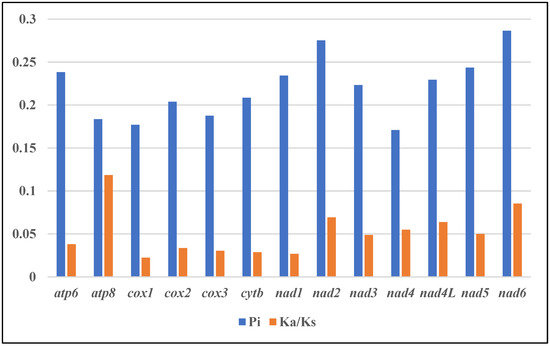 3.2. Analysis of Mitochondrial Protein-Coding Genes