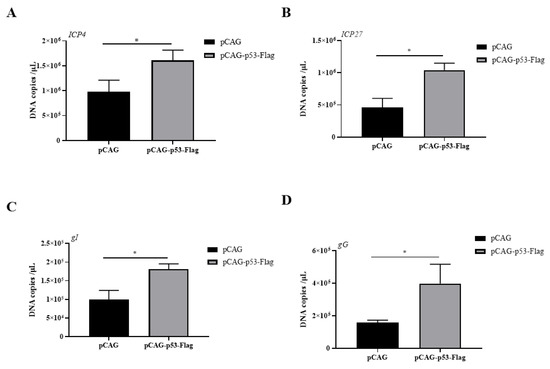 3.2. Overexpression of p53 Promotes Viral Gene Transcription