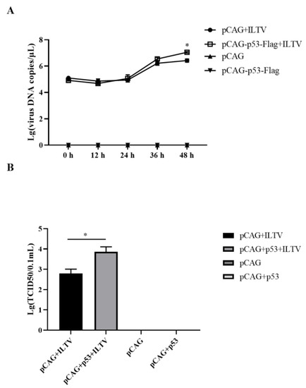 3.3. Overexpression of p53 Promotes the Replication of ILTV