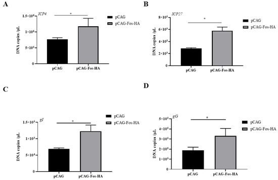 3.4. Overexpression of Fos Promotes Viral Gene Transcription