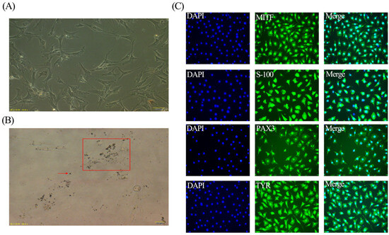 3.1. Isolation and Characterization of Silky Fowls Black-Bone Chicken Melanocytes