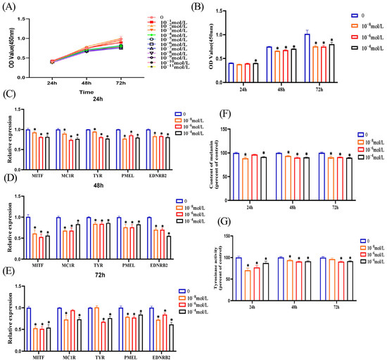 3.2. Melatonin Inhibits Melanin Synthesis in Melanocytes