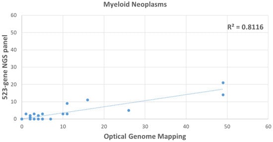 3.4. Comparison of HRD Scores between OGM and 523-Gene NGS Panel in Hematological Malignancy Cases