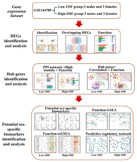 Yang, Y.; Wang, X.; Wang, S.; Chen, Q.; Li, M.; Lu, S. Identification of Potential Sex-Specific Biomarkers in Pigs with Low and High Intramuscular Fat Content Using Integrated Bioinformatics and Machine Learning. Genes 2023, 14, 1695. https://doi.org/10.3390/genes14091695