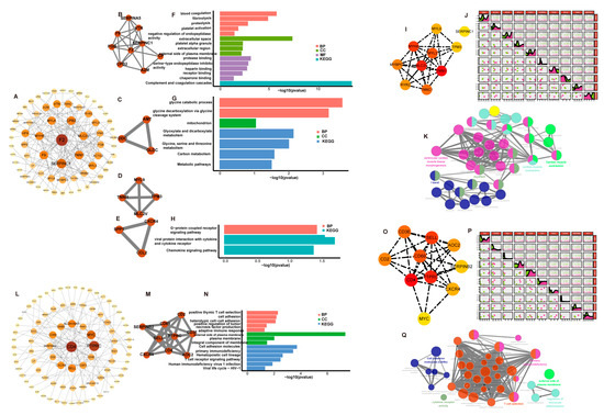 - Chin, C.-H.; Chen, S.-H.; Wu, H.-H.; Ho, C.-W.; Ko, M.-T.; Lin, C.-Y. cytoHubba: Identifying hub objects and sub-networks from complex interactome. BMC Syst. Biol. 2014, 8, S11. [Google Scholar] [CrossRef]