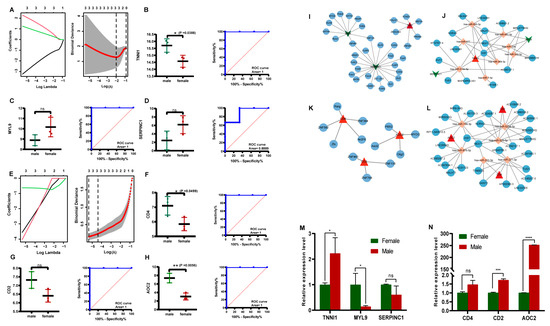 3.7. Gene Regulatory Network Analysis of Potential Sex-Specific Biomarkers