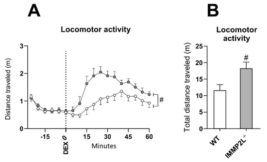3.3. Immp2lKD −/− KO Enhances Dexamphetamine-Induced Hyperlocomotion
