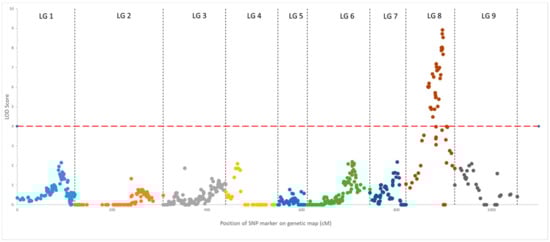 - Curtolo, M.; Cristofani-Yaly, M.; Gazaffi, R.; Takita, M.A.; Figueira, A.; Machado, M.A. QTL Mapping for Fruit Quality in Citrus Using DArTseq Markers. BMC Genom. 2017, 18, 289. [Google Scholar] [CrossRef] [PubMed]