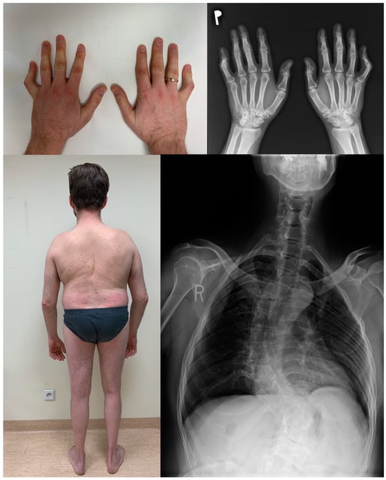 A 41-year-old male was admitted to our Department of Rehabilitation, Medical University of Warsaw, for the diagnosis and treatment of severe scoliosis and intermittent significant spinal pain. During the examination, a number of dysmorphic features besides scoliosis were noted, which suggested the presence of a genetic syndrome.