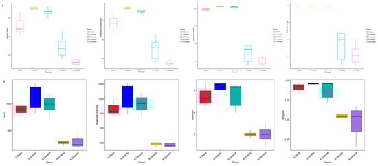 The Uparse algorithm (Uparse v7.0.1001, http://www.drive5.com/uparse/, accessed on 18 August 2013) was used for all samples of all the effective clustering tags, and species annotation was performed on OTUs sequences using the Mothur method and the SSUrRNA database of SILVA138.1 (http://www.arb-silva.de/, accessed on 27 August 2020). The PCA diagram was drawn using R software (Version 4.1.2). For two-group analysis, differential metabolites were determined by VIP (VIP ≥ 1) and absolute Log2FC (|Log2FC| ≥ 1.0). The significance for pathways with significantly regulated metabolites was determined by the hypergeometric test’s p-values. The difference analysis of α and β diversity was analyzed with a parametric test and non-parametric test, respectively, and a T-test and Wilcox test were used. For the samples with biological replicates, DESeq2 was used to analyze the differential expression between the two groups.