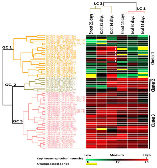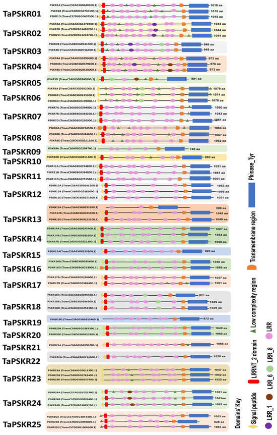 Khalil, H.B. Genome-Wide Characterization and Expression Profiling of Phytosulfokine Receptor Genes (PSKRs) in Triticum aestivum with Docking Simulations of Their Interactions with Phytosulfokine (PSK): A Bioinformatics Study. Genes 2024, 15, 1306. https://doi.org/10.3390/genes15101306