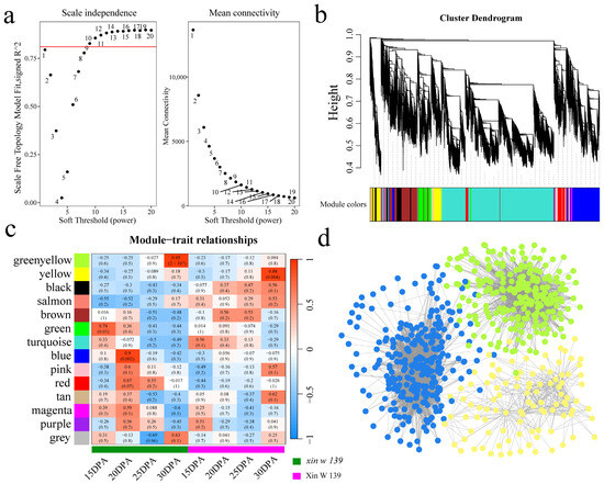 - Langfelder, P.; Horvath, S. WGCNA: An R package for weighted correlation network analysis. BMC Bioinform. 2008, 9, 559. [Google Scholar] [CrossRef]