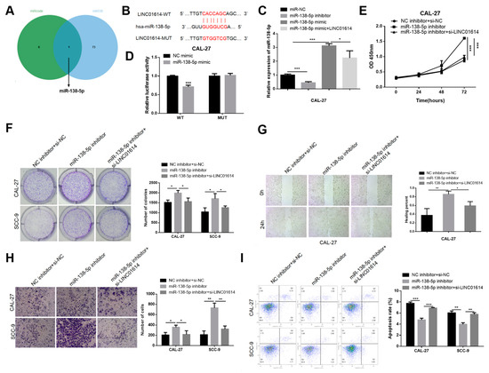 3.3. Si-LINC01614 Inhibited the Development of OSCC via Regulating miR-138-5p