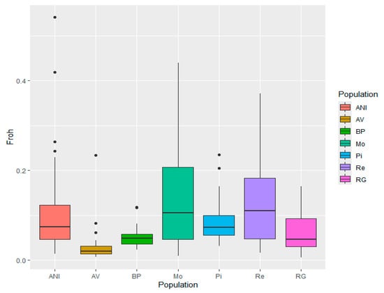 - Moscarelli, A.; Sardina, M.T.; Cassandro, M.; Ciani, E.; Pilla, F.; Senczuk, G.; Portolano, B.; Mastrangelo, S. Genome-wide assessment of diversity and differentiation between original and modern Brown cattle populations. Anim. Genet. 2021, 52, 21–31. [Google Scholar] [CrossRef] [PubMed]