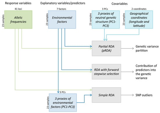 - Capblancq, T.; Forester, B.R. Redundancy Analysis: A Swiss Army Knife for Landscape Genomics. Methods Ecol. Evol. 2021, 12, 2298–2309. [Google Scholar] [CrossRef]