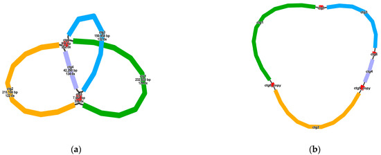 - Wick, R.R.; Schultz, M.B.; Zobel, J.; Holt, K.E. Bandage: Interactive visualization of de novo genome assemblies. Bioinformatics 2015, 31, 3350–3352. [Google Scholar] [CrossRef] [PubMed]