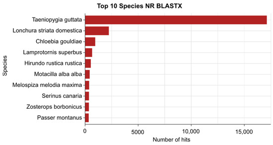 Top 10 species distribution of the transcript sequences of the zebra finch against the NR database.