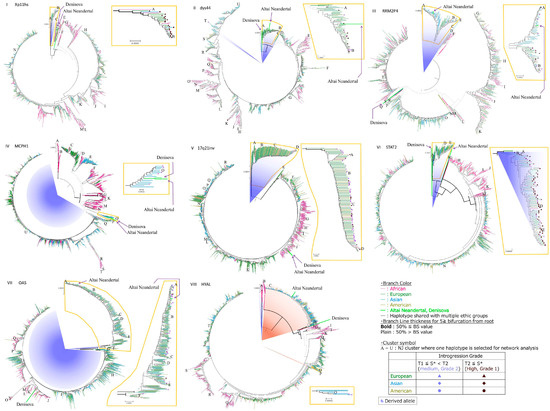 | IV | MCPH1 | Clustered with S* Asian | Clustered within Asian with S* | Inner cluster includes multiple Asian with medium-grade S*, Neanderthal, and Denisovan |