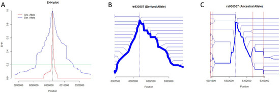- Sabeti, P.C.; Reich, D.E.; Higgins, J.M.; Levine, H.Z.; Richter, D.J.; Schaffner, S.F.; Gabriel, S.B.; Platko, J.V.; Patterson, N.J.; McDonald, G.J.; et al. Detecting recent positive selection in the human genome from haplotype structure. Nature 2002, 419, 832–837. [Google Scholar] [CrossRef]