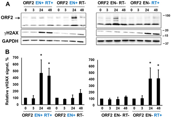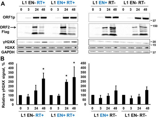 3.2. RT-Dependent Accumulation of γH2AX Signal upon Induction of ORF2p Expression