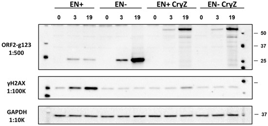 - Sokolowski, M.; Chynces, M.; deHaro, D.; Christian, C.M.; Belancio, V.P. Truncated ORF1 proteins can suppress LINE-1 retrotransposition in trans. Nucleic Acids Res. 2017, 45, 5294–5308. [Google Scholar] [CrossRef][Green Version]