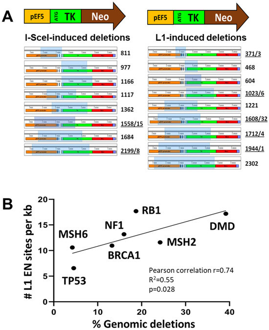 3.3. L1 Expression Causes Large Genomic Deletions That Do Not Contain Any L1 Sequences