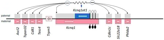 Molecularly, imprinted genes and their regulation are orchestrated by allelic DNA methylation (i.e., 5-methylcytosine (5mC)), histone modifications and non-coding RNAs [2], with an impact on the spatial chromosomal structure and the accessibility of imprinted gene transcription. In addition, imprinted gene clusters are interconnected [3], and for several imprinted loci, a modulation in expression by trans-acting factors has been demonstrated (e.g., [4,5]).