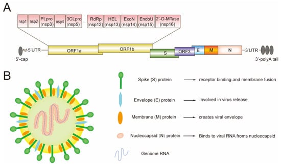 - Thiel, V.; Ivanov, K.A.; Putics, A.; Hertzig, T.; Schelle, B.; Bayer, S.; Weißbrich, B.; Snijder, E.J.; Rabenau, H.; Doerr, H.W.; et al. Mechanisms and enzymes involved in SARS coronavirus genome expression. J. Gen. Virol. 2003, 84, 2305–2315. [Google Scholar] [CrossRef] [PubMed]