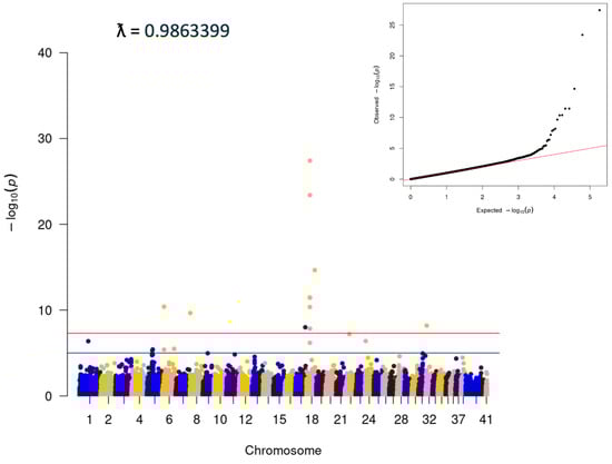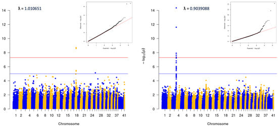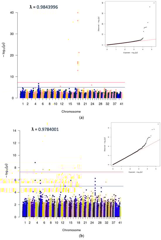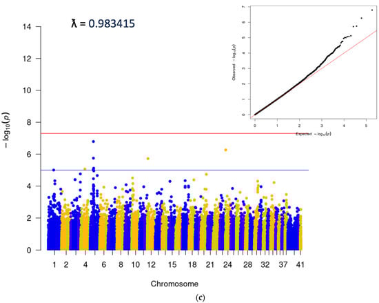 - Turner, S. qqman: An R Package for Visualizing GWAS Results Using Q-Q and Manhattan Plots. J. Open Source Softw. 2018, 3, 731. [Google Scholar] [CrossRef]