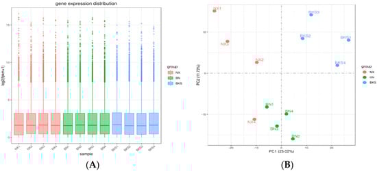This study included 14 Berkshires, 13 Ningxiang pigs and 12 F1 offspring (all from the Ningxiang Pig Farm, Hunan Dalong Animal Husbandry Technology Co., LTD., Changsha, China). These pigs were all female fattening pigs. In addition, there were no epidemiological outbreaks on the pig farm. During the growth and fattening stages, each pen housed a group of 10–12 pigs. The pigs were kept in standard environmental conditions without controlled temperature or lighting. They ate a standard daily diet and had free access to water. Adhering to the established protocol, healthy pigs of similar weight were randomly selected from each breed for subsequent analysis. Before slaughtering, the pigs underwent fasting. The mean body weights at slaughter were 98.1 kg for Ningxiang pigs, 118.61 kg for Berkshire pigs and 115.8 kg for F1 offspring, slaughtered on the same day. After slaughtering, all spleen samples used for this test were obtained from a transverse section which was made at the largest extension of the spleen, showing red and white pulp. This method allows for obtaining white pulp for study purposes [5]. Spleen samples were stored in liquid nitrogen immediately after collection and kept in a −80 °C refrigerator for one week until analysis.