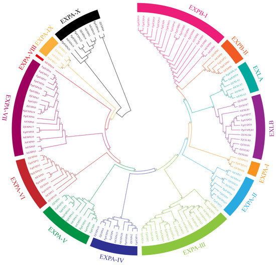 27. Kende, H.; Bradford, K.; Brummell, D.; Cho, H.-T.; Cosgrove, D.; Fleming, A.; Gehring, C.; Lee, Y.; Mcqueen-Mason, S.; Rose, J.; et al. Nomenclature for members of the expansin superfamily of genes and proteins. Plant Mol. Biol. 2004, 55, 311–314. [Google Scholar] [CrossRef] [PubMed]