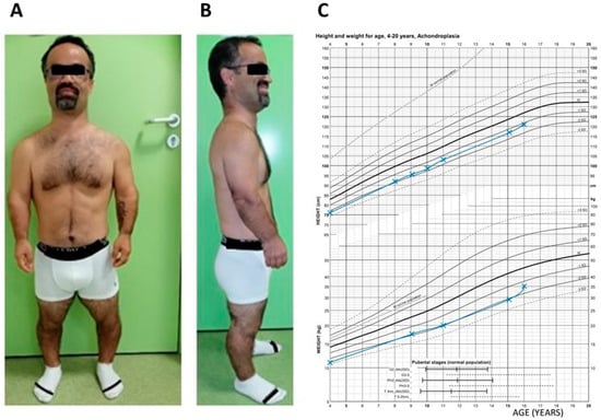 - Almeida, M.R.; Campos-Xavier, A.B.; Medeira, A.; Cordeiro, I.; Sousa, A.B.; Lima, M.; Soares, G.; Rocha, M.; Saraiva, J.; Ramos, L.; et al. Clinical and molecular diagnosis of the skeletal dysplasias associated with mutations in the gene encoding Fibroblast Growth Factor Receptor 3 (FGFR3) in Portugal. Clin. Genet. 2009, 75, 150–156. [Google Scholar] [CrossRef] [PubMed]