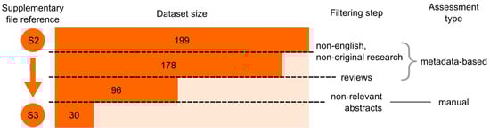 The research resulted in 199 articles (Supplementary Table S2), which underwent curation. Eliminating non-English-language entries, book chapters, surveys, editorials, retracted articles, and conference materials reduced the papers to 178. Among these, 82 reviews were excluded. The remaining 96 articles were manually screened based on an expert review of the available abstract to identify those of interest, and 30 were selected. Three articles were excluded since the full text was not available. Supplementary Table S3 contains the 27 articles included in the review. A workflow detailing the entire process is visible in Figure 1, and papers are synthesized in Table 1. Searching for these articles’ DOIs on UniProt returned two hits [24,25] linked to proteins not associated with any OMIM or OrphaNet on UniProtKB, while searching the publication DOIs on OMIM using the “ref_doi’’ key yielded no results. Furthermore, ~30% of the articles were not associated with any LSD-related Medical Subject Headings (MeSHs), and only five of those 27 documents were annotated on PubMed with the Drug Repositioning MeSH. The results of this cross-search are interesting as they identified the inclusion of the selected articles in searches based on domain identifiers (MeSH, OrphaNetID, OMIMID) as very unlikely.