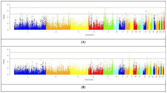 The data were visualized in the qqman package using the R programming language (Version 4.0.0) [73].