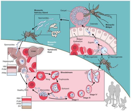 88. Bouyer, G.; Barbieri, D.; Dupuy, F.; Marteau, A.; Sissoko, A.; N’Dri, M.E.; Neveu, G.; Bedault, L.; Khodabux, N.; Roman, D.; et al. Plasmodium falciparum sexual parasites regulate infected erythrocyte permeability. Commun. Biol. 2020, 3, 726. [Google Scholar] [CrossRef]
