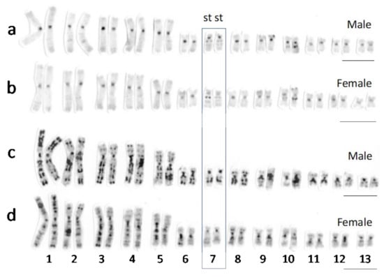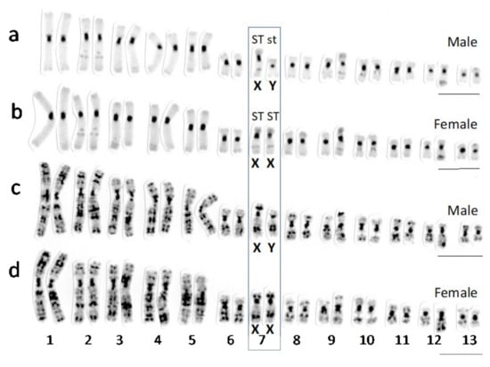 - Sumner, A.T. A simple technique for demonstrating centromeric heterochromatin. Exp. Cell Res. 1972, 75, 304–306. [Google Scholar] [CrossRef]