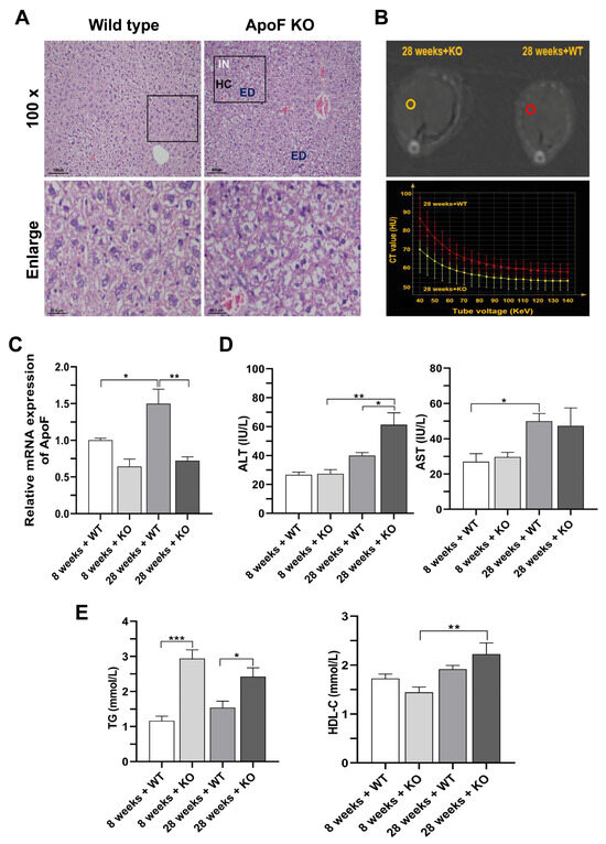 3.2. Histopathological Observation and Detection of Enzyme Activity and Dyslipidemia in ApoF Knockout Mice