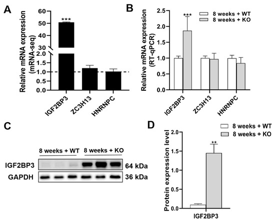 3.7. The Expression Levels of mRNA and Protein of m6A Regulators