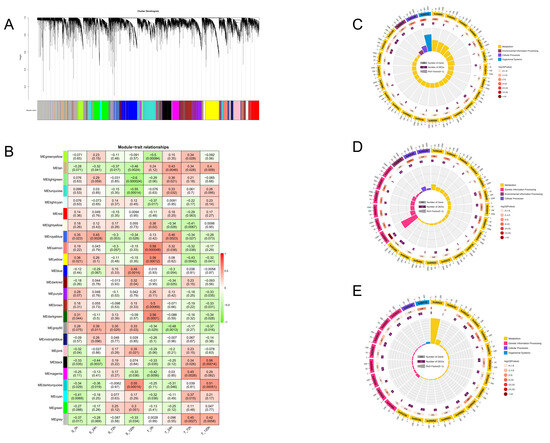 - Langfelder, P.; Horvath, S. WGCNA: An R package for weighted correlation network analysis. BMC Bioinform. 2008, 9, 559. [Google Scholar] [CrossRef]