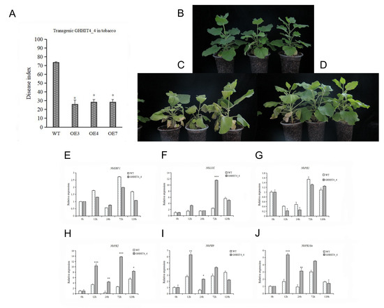 3.10. Overexpression of GHHIT4_4 Enhanced Verticillium Wilt Resistance in Tobacco